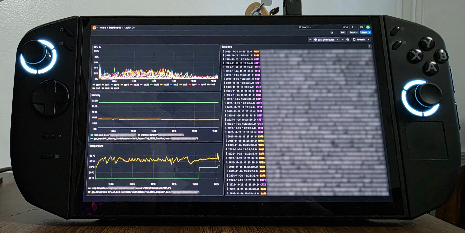Metrics and logs shipping on a Lenovo Legion Go, just because.